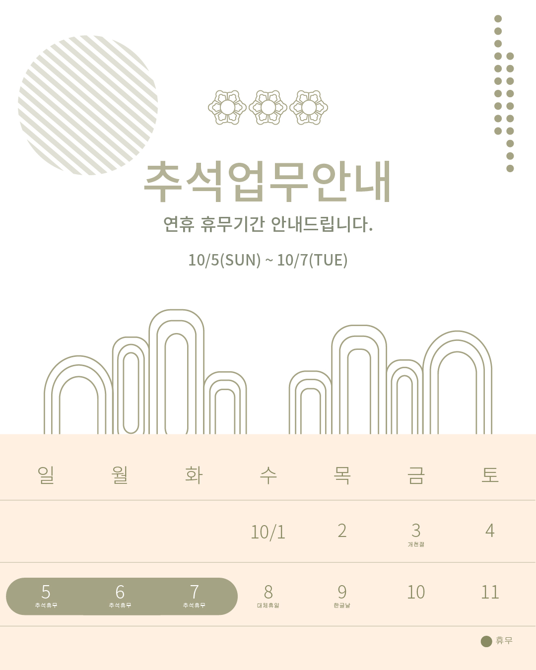 추석 연휴 휴무와 영업시간을 안내드리니 방문에 참고부탁드립니다.